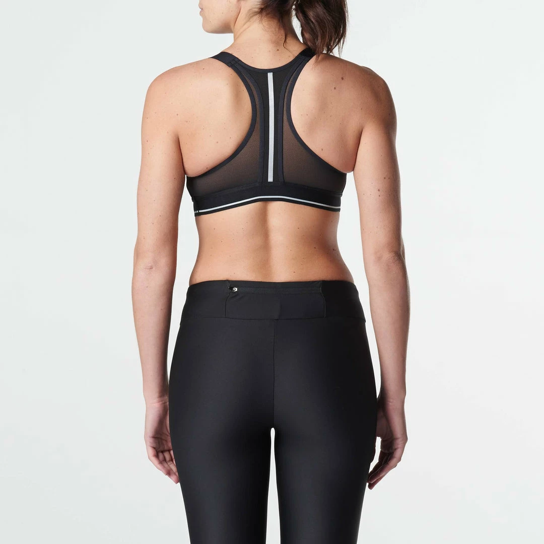 Racer back that frees the shoulder blades for superior comfort when running.